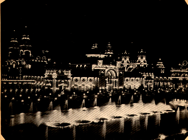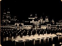 The MACHINERY & TRANSPORTATION and COURT OF FOUNTAINS in illumination.