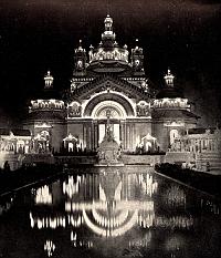 The HORTICULTURAL BUILDING in illumination with FOUNTAIN of NATURE in front.