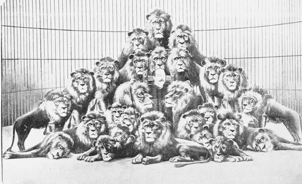 MAN in the performance at BOSTOCKS TRAINED WILD ANIMAL SHOW....