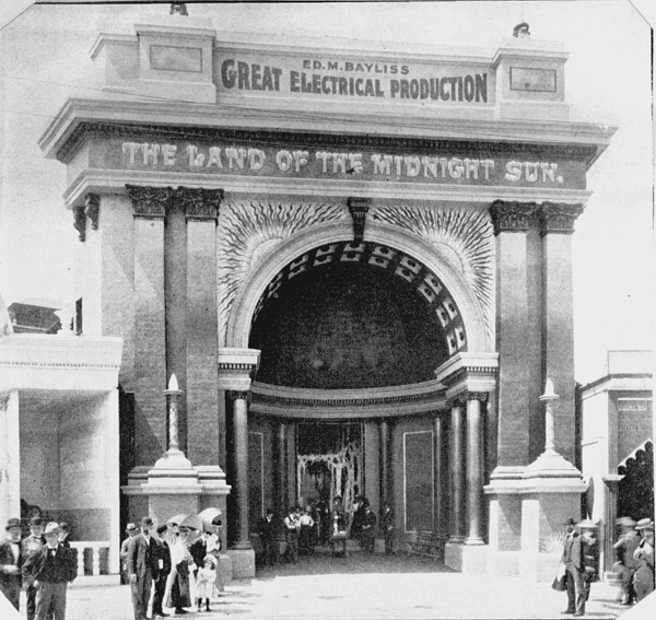 " THE LAND OF THE MIDNIGHT SUN"a MIDWAY SHOW above BOSTOCKS ANIMAL SHO