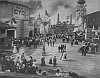 The M I D W A Y looking up from Alt Nurnberg to the entrance of the " STREETS OF CAIRO ". The " WAR CYCLORAMA " can be seen to the left. A small portion of the B O S T O N I N N can also be seen at extreme left.