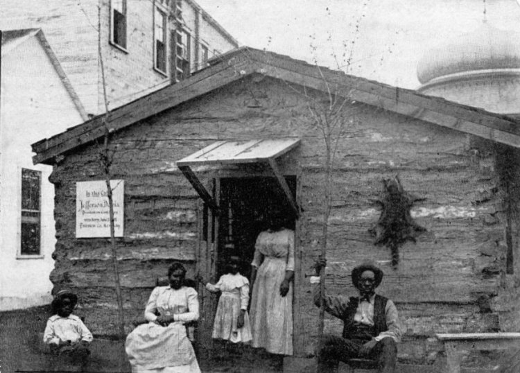 An old log cabin in the " OLD PLANTATION ".The cabin in which Jeff. Davis was born.